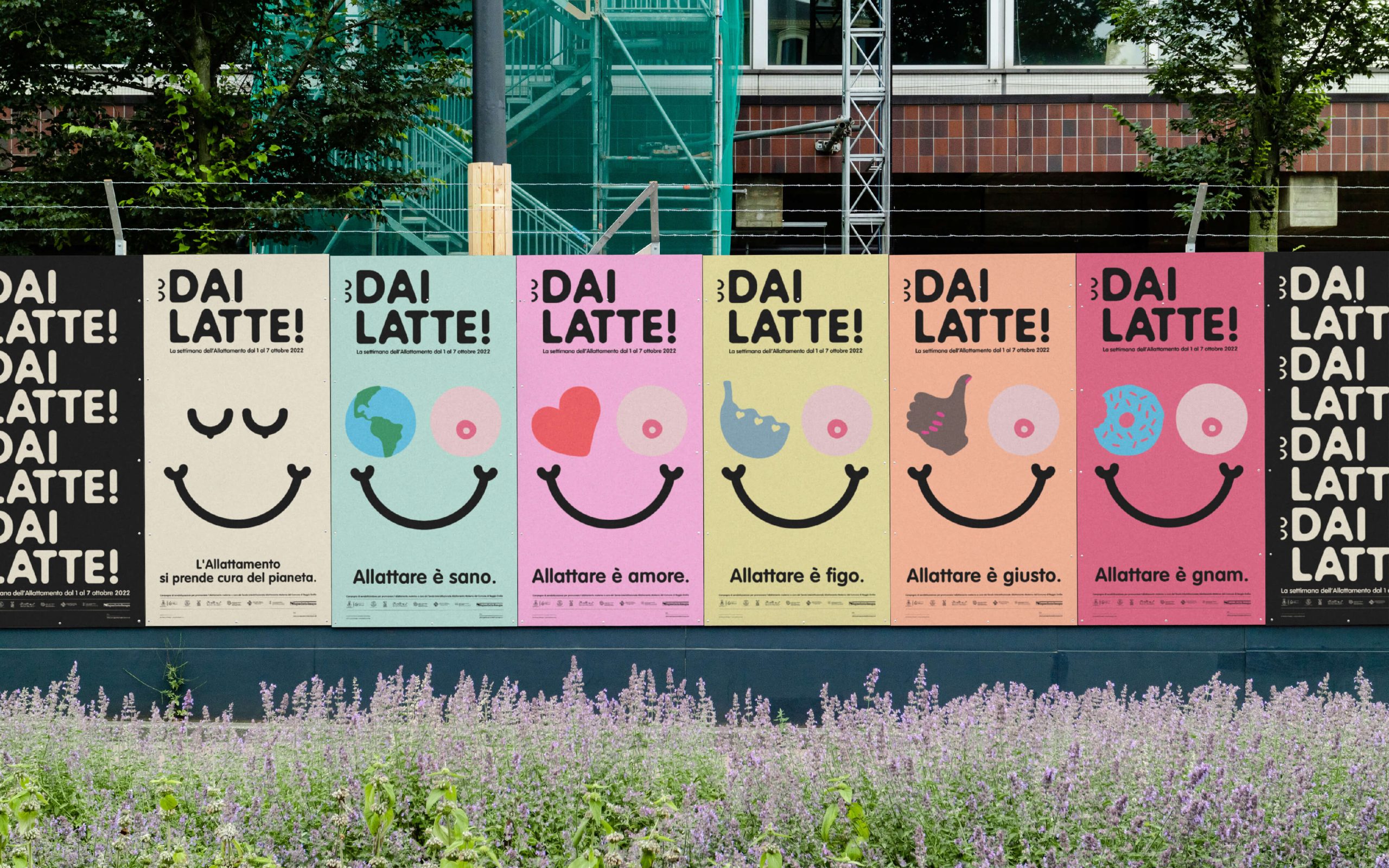 Visual identity for the public awareness campaign on the importance and value of breastfeeding. Every year the World Breastfeeding Week (WBW) takes place around the world, promoted by the World Health Organization (WHO) to raise awareness of the importance and value of breastfeeding, using a different theme each year. The theme is launched by the WABA, World Alliance for Breastfeeding Action and welcomed with love by the City of Reggio Emilia.