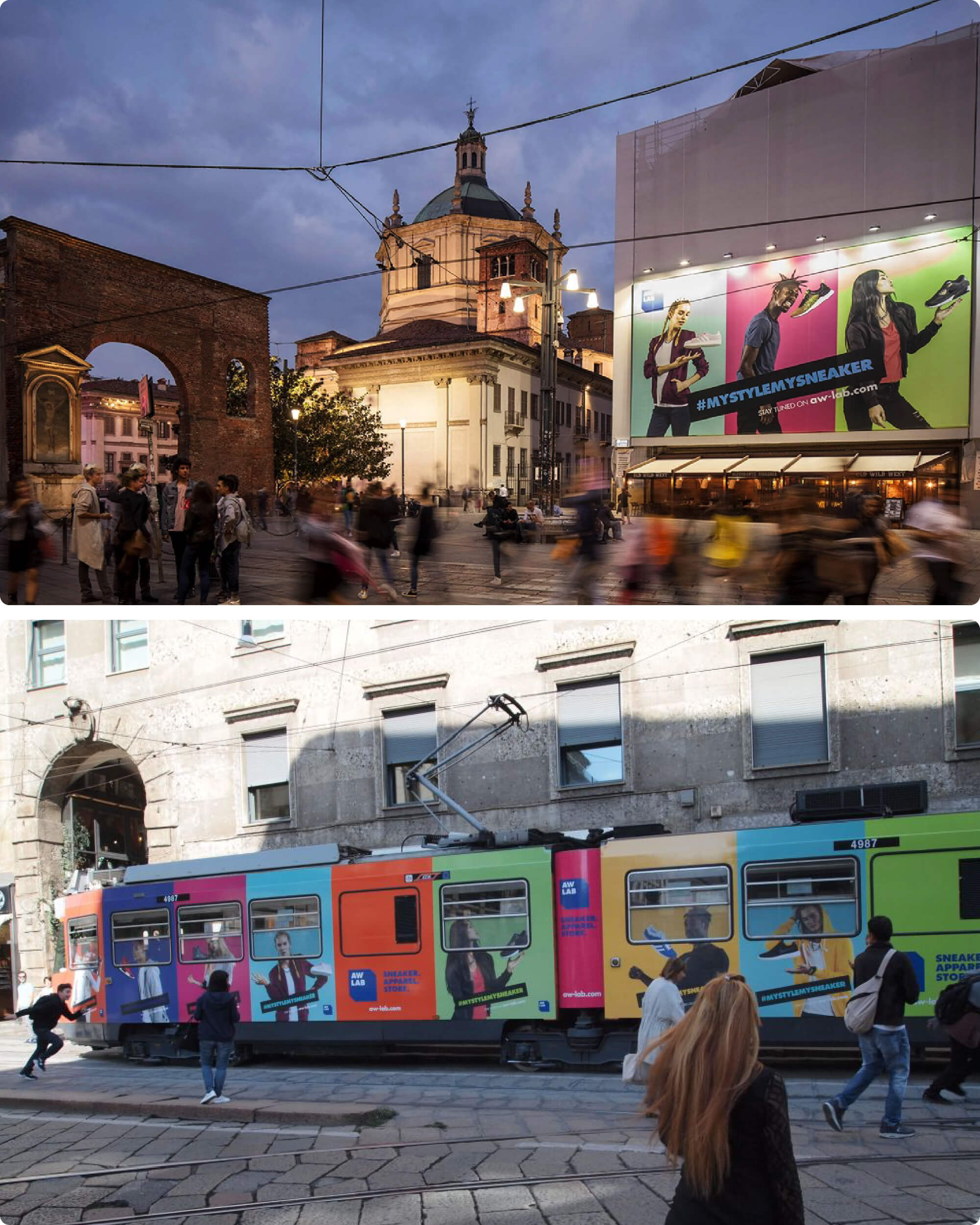 My Style My Sneaker è il nome della campagna “back to school” del principale rivenditore italiano di sneaker e abbigliamento sportivo. Insieme a Sartoria Comunicazione e al fotografo Olaf Pignataro, ho creato questa creatività basata su un format grafico molto semplice, colorato e coinvolgente, ampiamente adattato in vari formati, dal p.o.p. agli allestimenti per i negozi, dalle grandi affissioni statiche a quelle dinamiche.